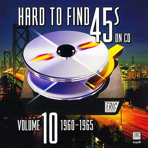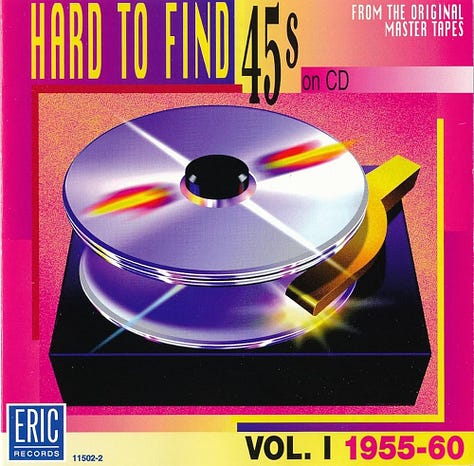 Compilations were the backbone of my musical education. When I wanted to get into a genre but didnât have the slightest clue where to start, it was always a safe bet to trust the judgment of someone who cared enough to put together a primer for you. Before the advent of sprawling genre or âvibeâ playlists on platforms and Spotify and YouTubeâat first curated by real humans, though rarely the case these daysâcollections of related music had to be assembled by people that knew their stuff. As a kid, I would often see a series called Hard to Find 45s on CD populating the bargain bins of department stores and the seldom-disturbed CD racks in thrift shops. Each disc would focus on a narrow period of time in pop music history (sometimes as vague as âthe â60sâ or as specific as â1957-1959â), with liner notes providing some quick facts about each artist featured.